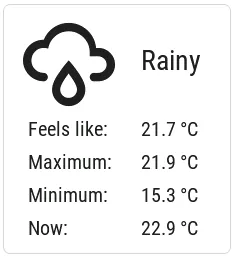 Section titled “Weather forecast panel”Another example relying on the Grid layout can be a weather panel showing the forecast through the OpenWeatherMap integration of Home Assistant.